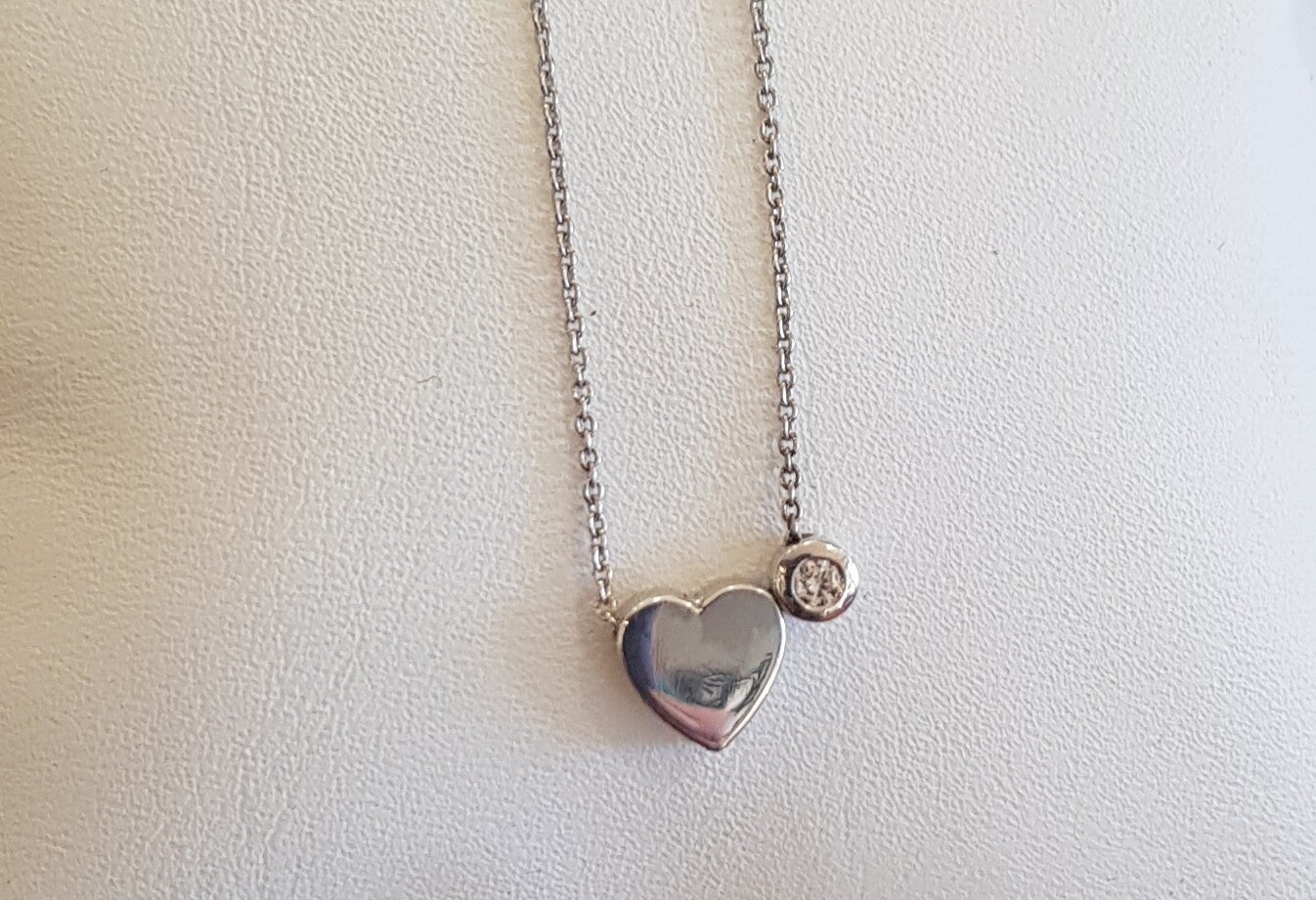 Ketting met lief klein hartje waar eventueel aan de achterkant as van een overledene dierbare, haar, moedermelk, etc. Met uv hars ingelegd kan worden. Met daarnaast een heel klein zirconia steentje.