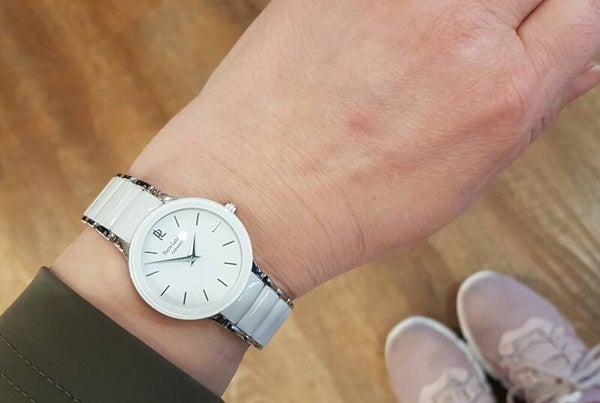 Stijlvol, elegant en vrouwlijk is dit prachtige wit keramiek horloge van Pierre Lannier. Een witte wijzerplaat met een witte rand op het glas maakt de stijl van dit horloge hellemaal af. Band met vouwsluiting.