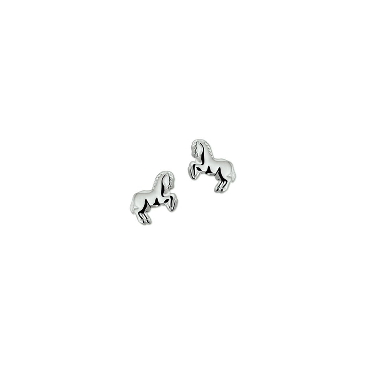 Zilveren gerhodineerde oorknoppen met een paard, afmeting 7 x 8..5 mm.
