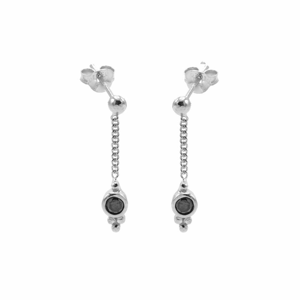 Zilveren Oorknopjes met zwarte zirkonia aan ketting
