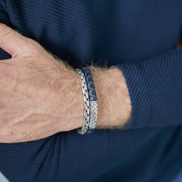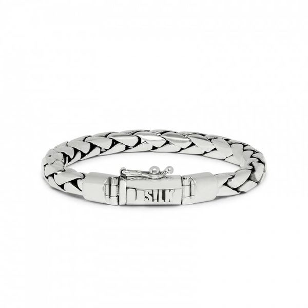 Deze stijlvolle gevlochten zilveren armband is het nieuwste ontwerp in de Fox Collectie. Het ontwerp is gebaseerd op de Aziatische vlechtstructuren zoals we van SILK Jewellery gewend zijn. De armband is met de handgemaakt en in verschillende maten voor zowel heren als dames verkrijgbaar. Combineer deze zilveren armband met een lederen SILK armband voor een casual stylish look. Bijvoorbeeld de lederen armbanden 853 en 326 uit de Arch collectie hebben een handgevlochten ronde lederen band waardoor deze ongeveer hetzelfde om de pols valt als de 165 Fox armband.