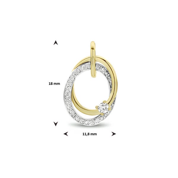 14k Bicolor geel- en witgouden hanger uitgevoerd met schitterend diamant briljant geslepen, h, si. De hanger heeft een totale hoogte van 1.8cm en een breedte van 11.8mm.