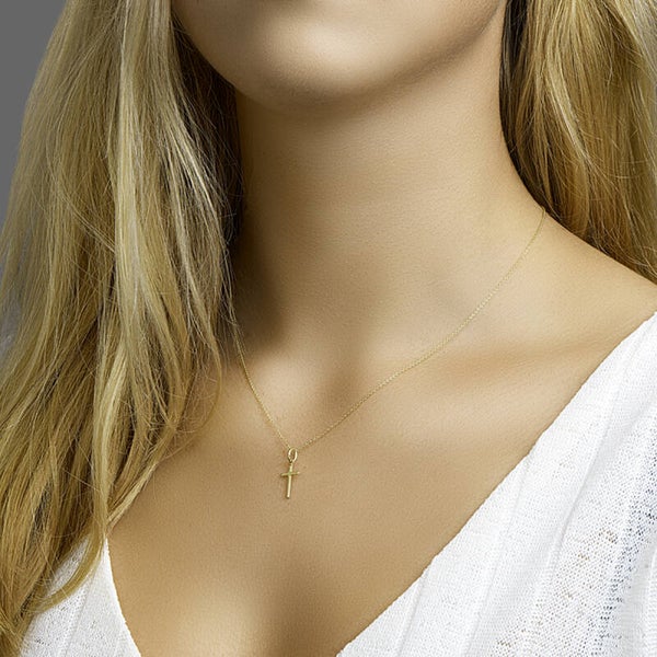 14 krt. Geelgouden collier met een kruis. De lengte van het collier bedraagt 41cm met 4cm extensie. De schakelbreedte bedraagt 1.0mm.