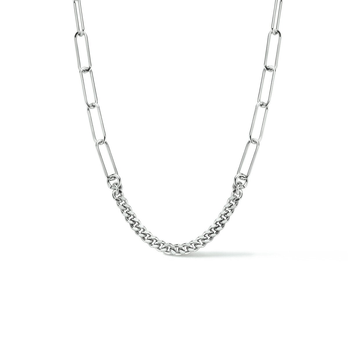 Gerhodineerd 925 zilveren collier uitgevoerd met een gourmette schakel van 2,8mm en een paperclip schakel van 3.5mm. Het collier heeft een draaglengte van 42cm met een extensie van 3cm en een karabijn sluiting.