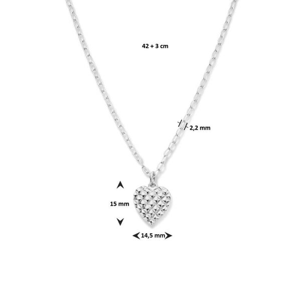 Gerhodineerd 925 zilveren collier uitgevoerd met een hanger in de vorm van een hart.Het collier heeft een draaglengte van 42cm met een extensie van 3cm en een karabijn sluiting.