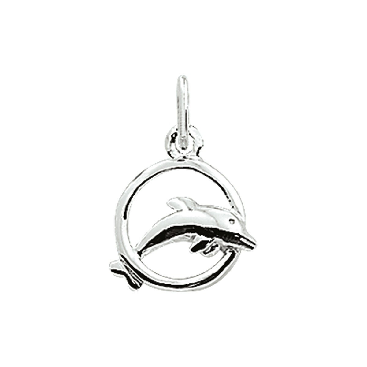 Zilveren hanger/bedel in de vorm van een "dolfijn die door een ring springt"