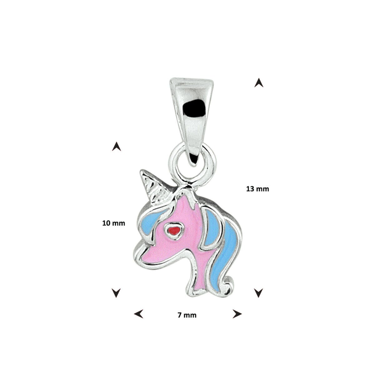 Schattige gerhodineerd zilveren fantasie eenhoorn hanger roze en blauw emaille met lusoogafmeting 13x7mm. 26418