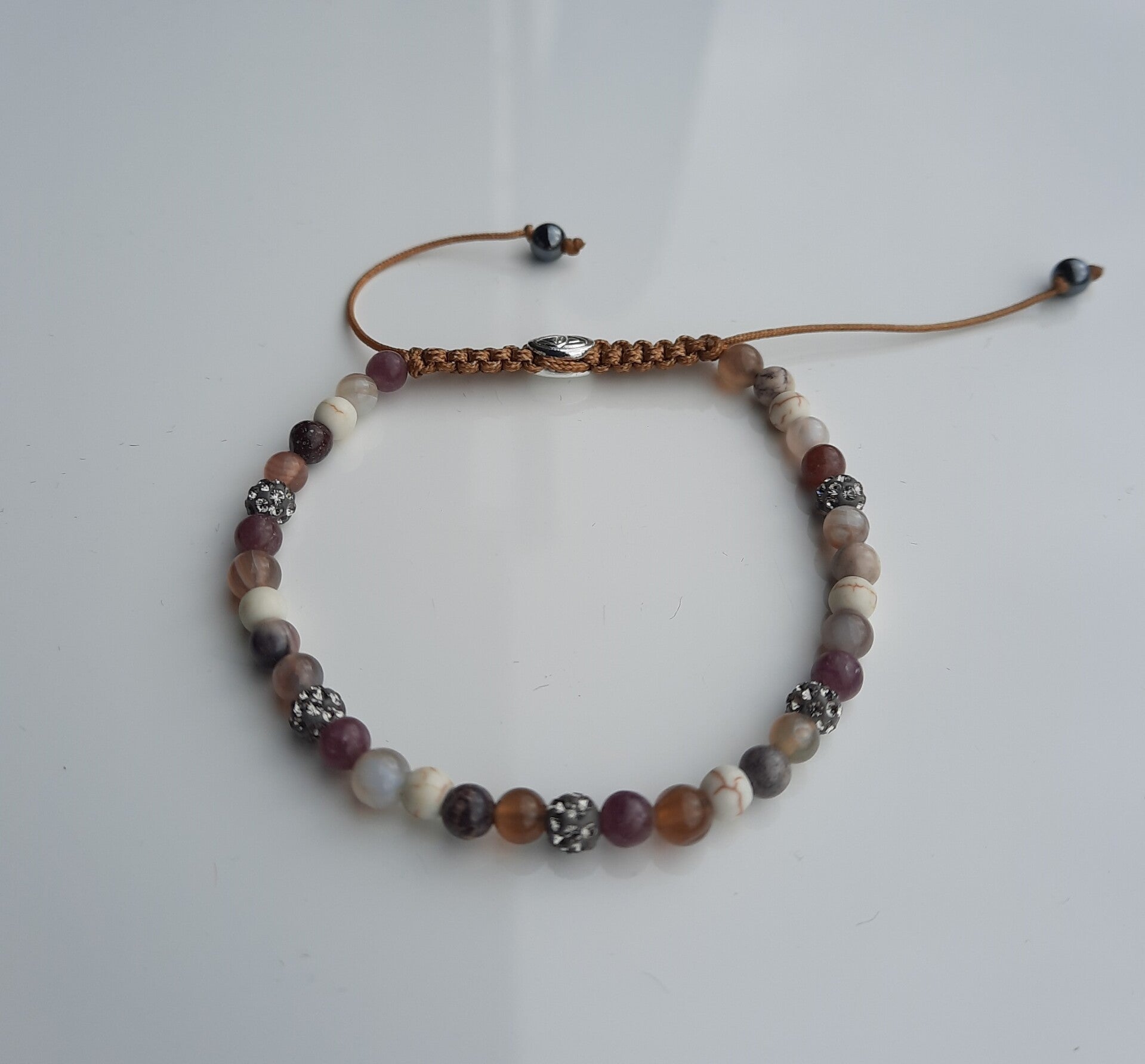 Deze echte edelstenen armband met zilver crystal van Karma is op verschillende lengtes draagbaar.