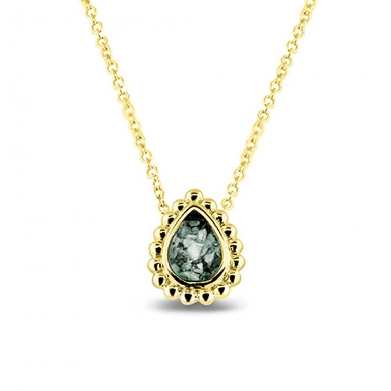 Traan hanger, inclusief collier. Dit sieraad wordt zichtbaar aan de voorkant gevuld met as en wordt vermengd met onze speciale hars.