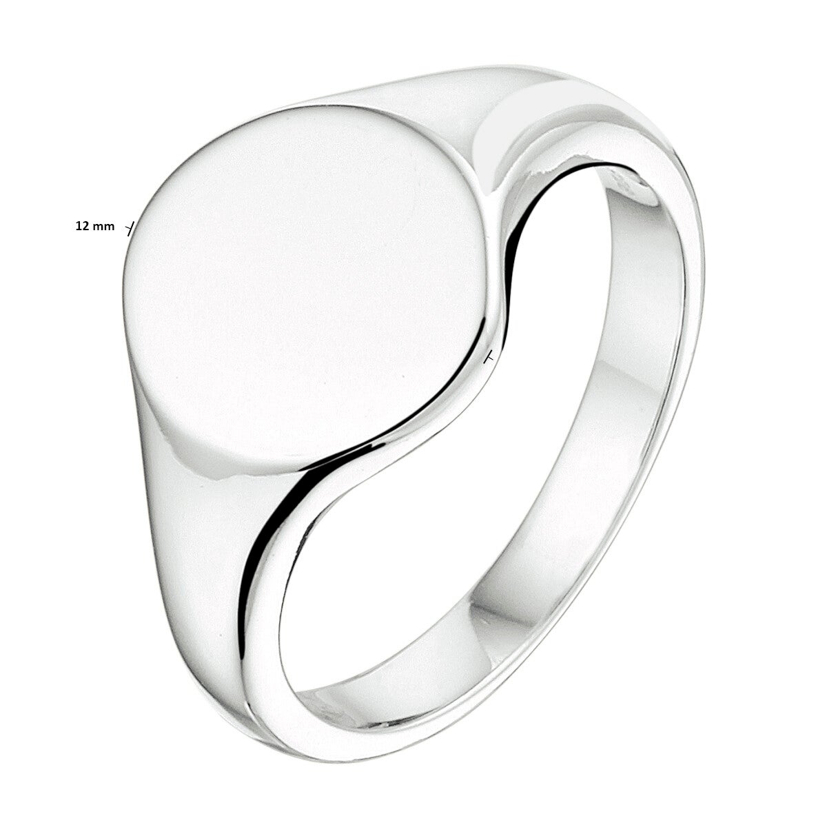Gerhodineerd zilveren graveer ring met rondje waar iets kleins in gegraveerd kan worden zoals een letter of hartje.