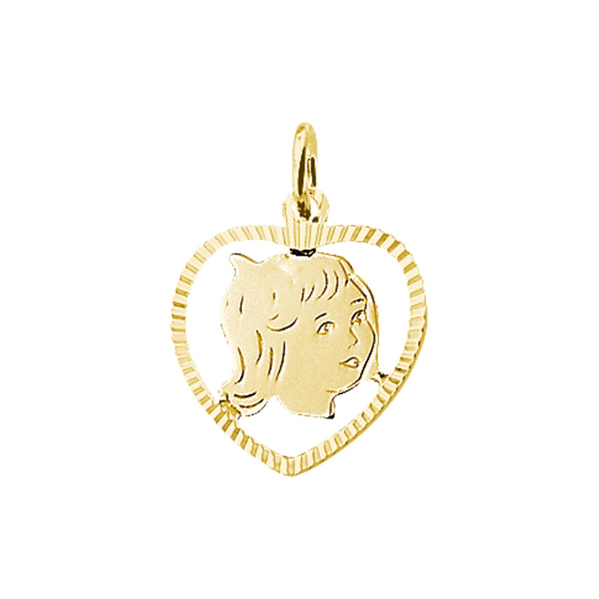 Geelgouden hanger met een kinderhoofdje en een gediamanteerde afwerking.