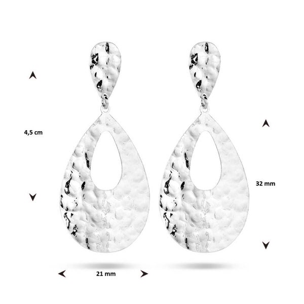 Gerhodineerde zilveren oorhangers in een elegante druppel vorm met gehamerd motief.