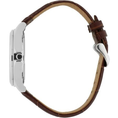 Herenhorloge van Olympic met stalen band en kast met witte wijzerplaat en zilverkleurige streepjes. Met datumaanduiding.