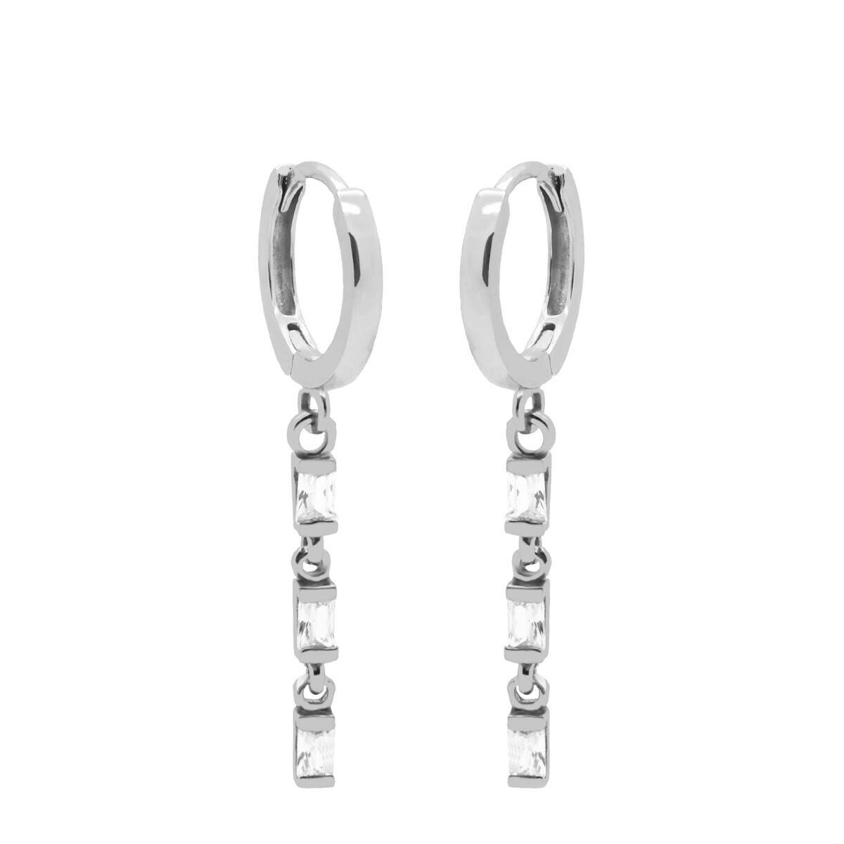 Zilver oorringen met kettingje met 3 baquete vorm geslepen zirkonia's.