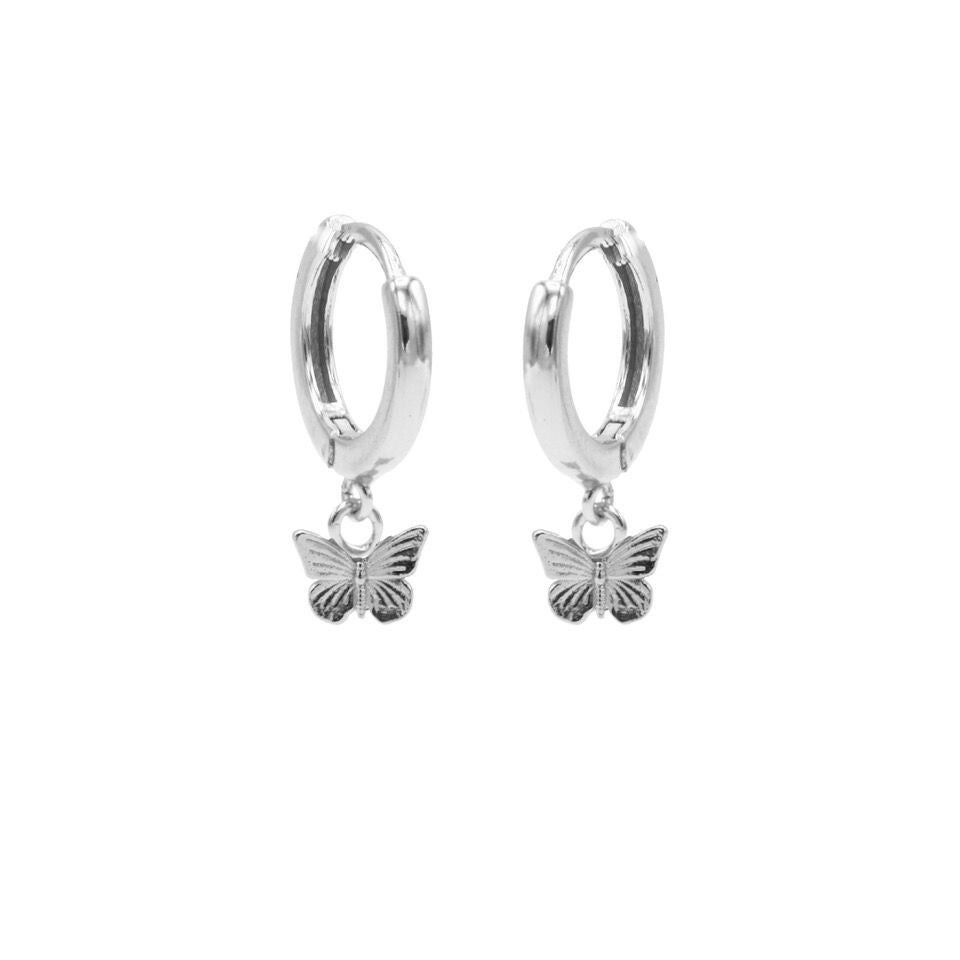 Zilveren klapoorringen met vlinder