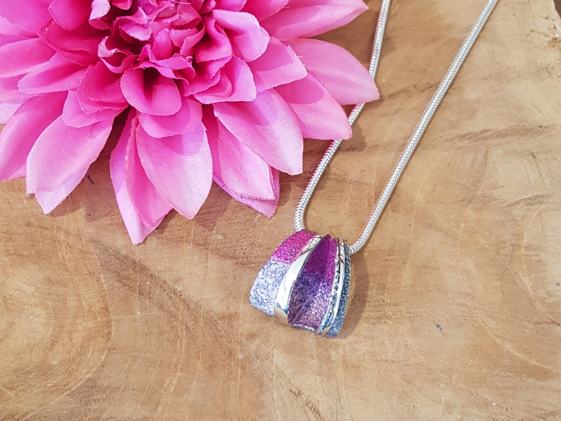 Zilveren hanger met rose tint. Exclusief ketting.